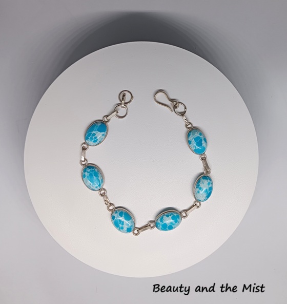 Handmade silver 925 bracelet with larimar stones .